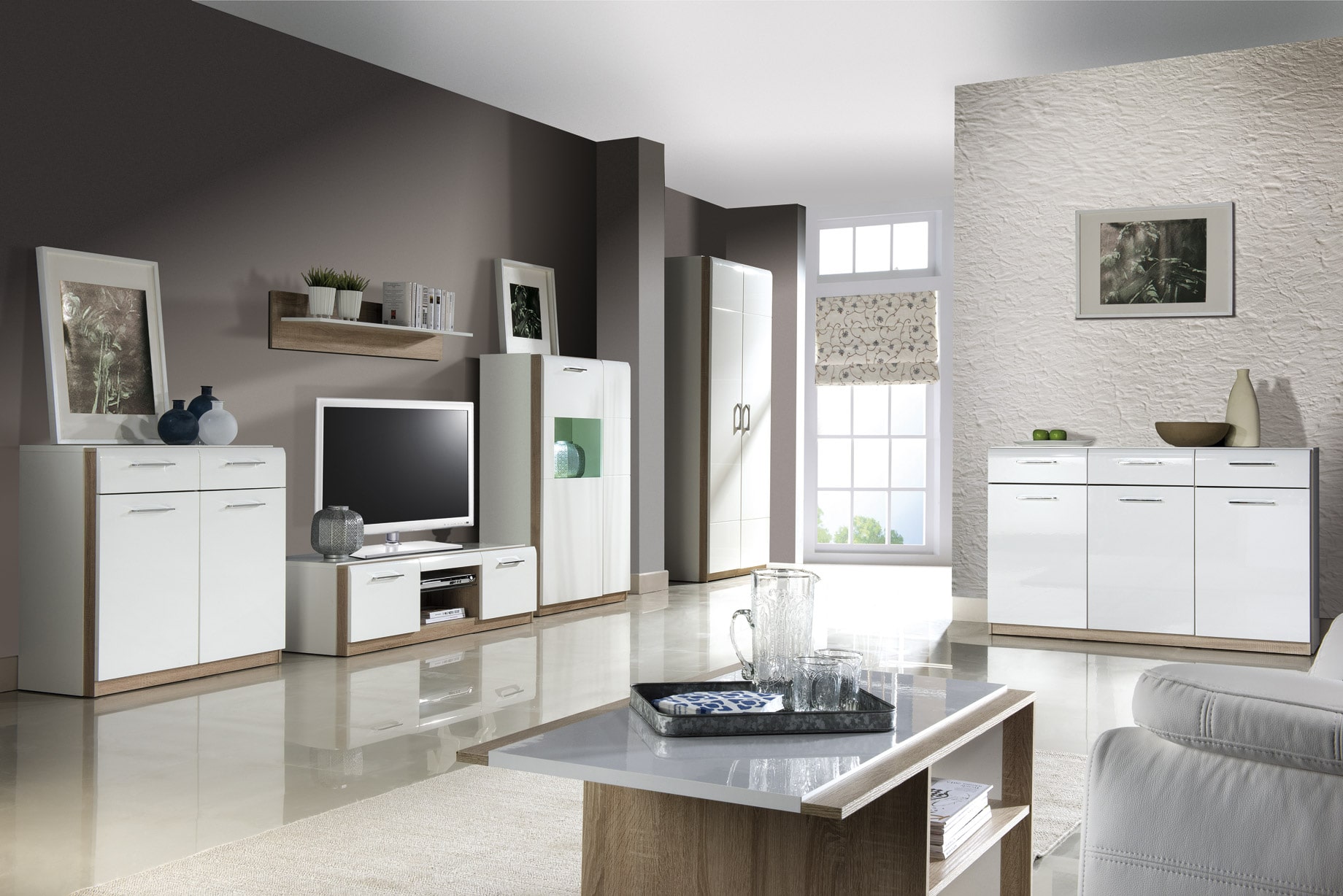 Biela + Dub sonoma svetlá + Biely vysoký lesk
