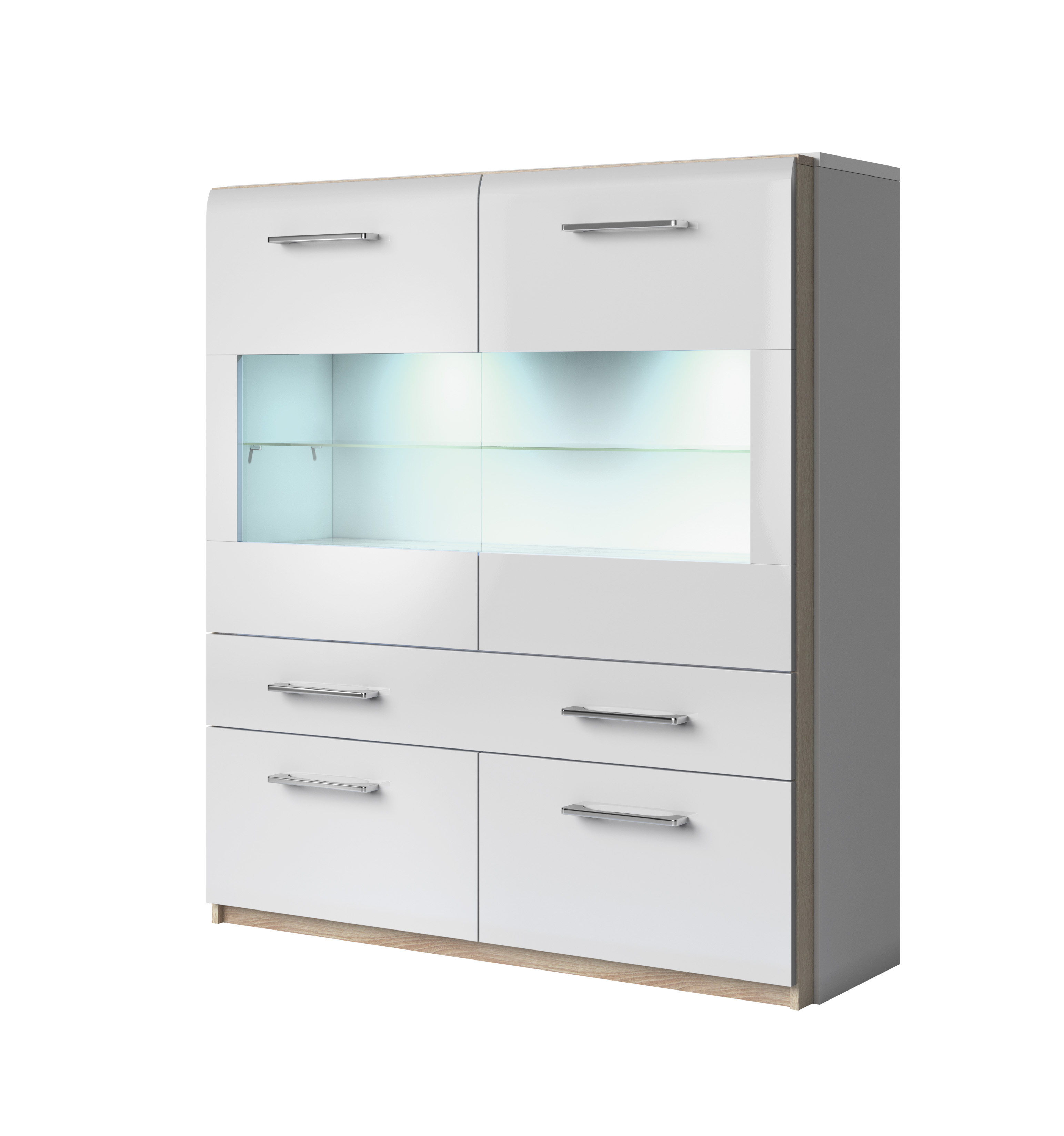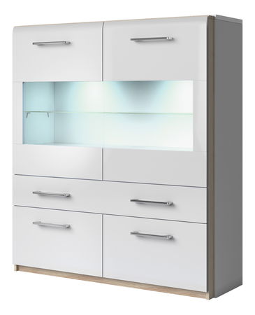 Vitrína Melia Typ 46 (biela + dub sonoma svetlá + biely vysoký lesk)