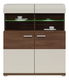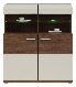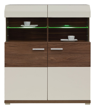 Front a boky su vyrobené z MDF laminovaných dosiek s hrúbkou 22 mm. Ostatné diely sú vyrobené z drevotrieskových dosiek s hrúbkou 16 mm. Zásuvky Hettich Quadro 25 majú tichý dojazd. Podsvietenie je v cene. Sklo je tvrdené.