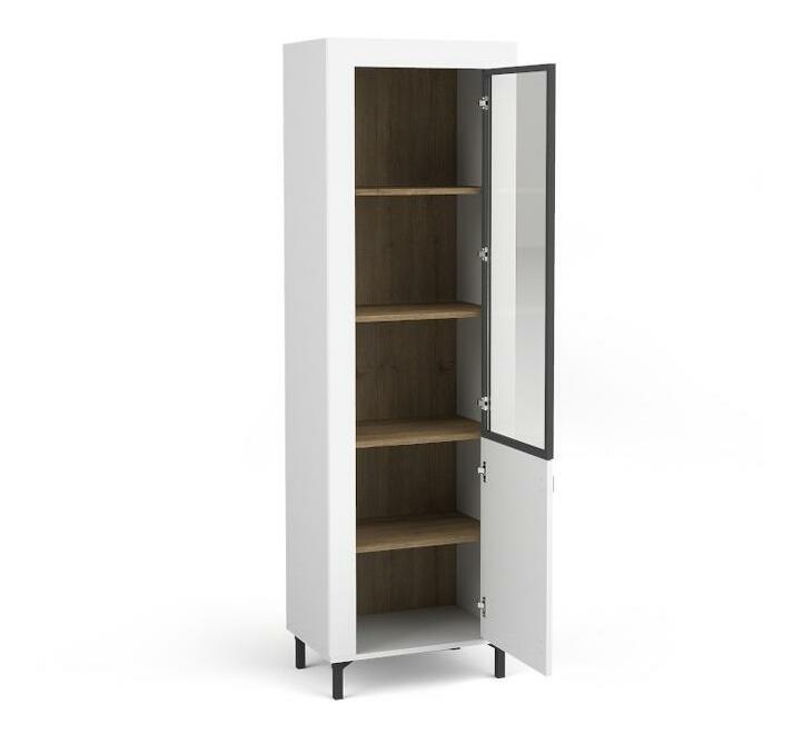 Vitrína Mossana MO3 (biela) s výškou 193,6 cm a hĺbkou 39,8 cm je moderný kúsok nábytku pre Váš domov. Vitrína obsahuje päť pekne vyhotovených poličiek, z ktorých dve sú kryté plnými dverami, takže môžete skryť veci, ktoré nechcete vidieť. Vitrína je vyrobená z laminovanej dosky, ktorá zaisťuje jej dlhú životnosť a jednoduchú údržbu. S touto vitrínou budete mať nielen praktický úložný priestor, ale aj modernú dekoráciu do Vášho interiéru.