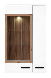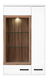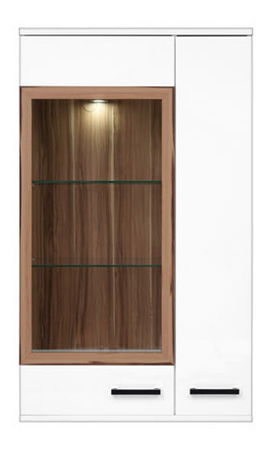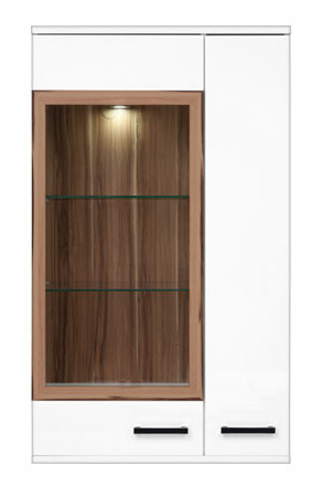 Vitrína na stenu s dvomi dvierkami, pričom jedny sú sčasti presklené. Presklená časť obsahuje dve sklenené poličky a osvetlenie vnútorného priestoru.