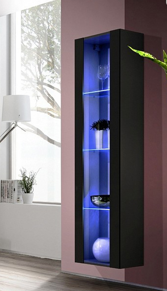 Vitrína na stenu Ferryhill 23 ZZ FY 41 (s osvetlením) (čierna + lesk čierny)