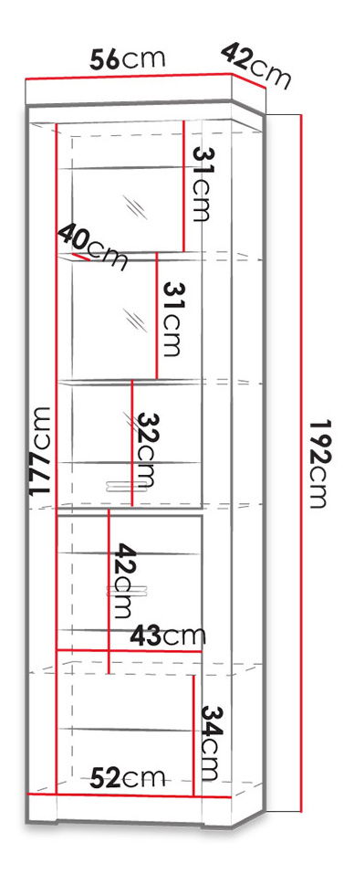 Presklená vitrína je ideálnou voľbou pre tých, ktorí hľadajú pohodlie a štýl. Nenechajte svoje vzácne vyrezávané sošky alebo babičkin porcelán chradnúť v škatuli v pivnici. Dajte svoje skvosty na obdiv v presklenej vitríne Nadia N4-L. Jej elegantné prevedenie, rovnako ako prikúpené LED osvetlenie ešte viac zvýrazní vaše malé poklady. Vaša obývačka sa razom ocitne na vyššej úrovni. Rozmery: šírka: 56 cm výška: 192 cm hĺbka: 42 cm Farba: farebné prevedenie si vyberte tu Doplňujúce informácie: možnosť dokúpenia LED osvetlenia osvetlenie je súčasťou lešteného prírodného dreva, bez osvetlenia sklenených políc, DTD doska (16 mm) úchytky: kov ochranná PVC hrana (0,8 mm) otváranie na ľavú stranu Záručná doba: 24 mesiacov