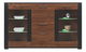 Elegantná trojdielna vitrína s dvierkami a zásuvkou v strede. Po stranách sa nachádzajú vitríny so sklenými policami. LED osvetlenie sa v balení nenachádza, ale môžete si ho prikúpiť. Nájdete ho na tejto stránke nižšie pod označním "Odporúčame dokúpiť".