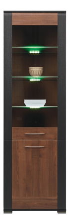 Jednodielna vitrína s 2 sklenými policami za presklenými dvierkami v hornej časti a samostaným úložným priestorom umiestneným pod ním. LED osvetlenie sa v balení nenachádza, ale môžete si ho prikúpiť. Nájdete ho na tejto stránke nižšie pod označním "Odporúčame dokúpiť".