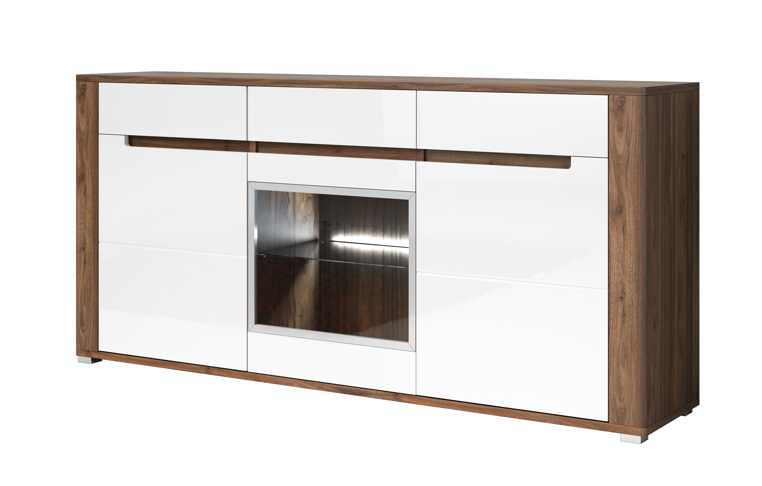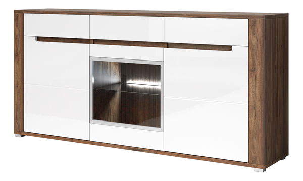 Nízka vitrína Netley so strednou presklenou časťou a poličkou s LED podsvietením je nie len štýlová ale aj praktická. Zvyšok vitríny totiž môžete využiť ako úložný priestor v obývačke alebo kancelárií. Decentné osvetlenie dovolí vyniknúť dekoráciám vo vitríne, ktoré budú pútať pozornosť. Nábytok Netley je vyrobený z kvalitného a odolného lamina.