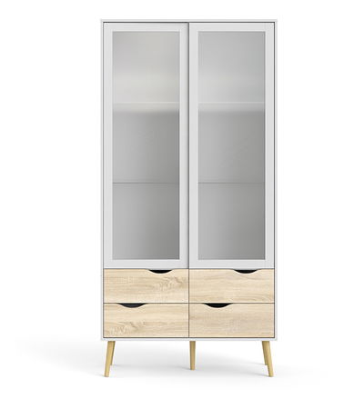 Vitrína 75462 je výborným prostriedkom, ako zamaskovať všetky nepotrebné či nevyužívané veci. S množstvom úložného priestoru, ktorým sa pýši, bude dobrým a praktickým pomocníkom v domácnosti. Pozostáva zo skrinky s dvomi dvierkami, za ktorými sa nachádzajú police, a z štyroch šuplíkov. Dvierka sú sklené.
