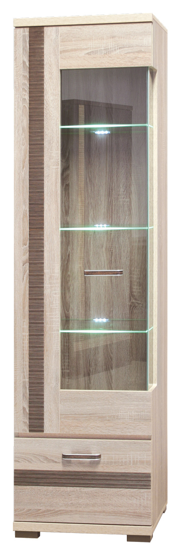 Jednodverová vitrína so zásuvkou v spodnej časti.