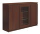 Trojdverová vitrína s presklenou strednou časťou. Vďaka poličkám ponúka dostatok odkladacieho priestoru.