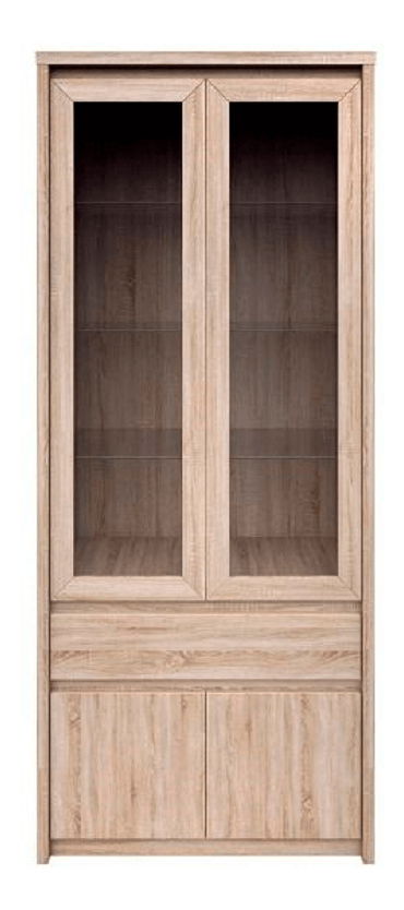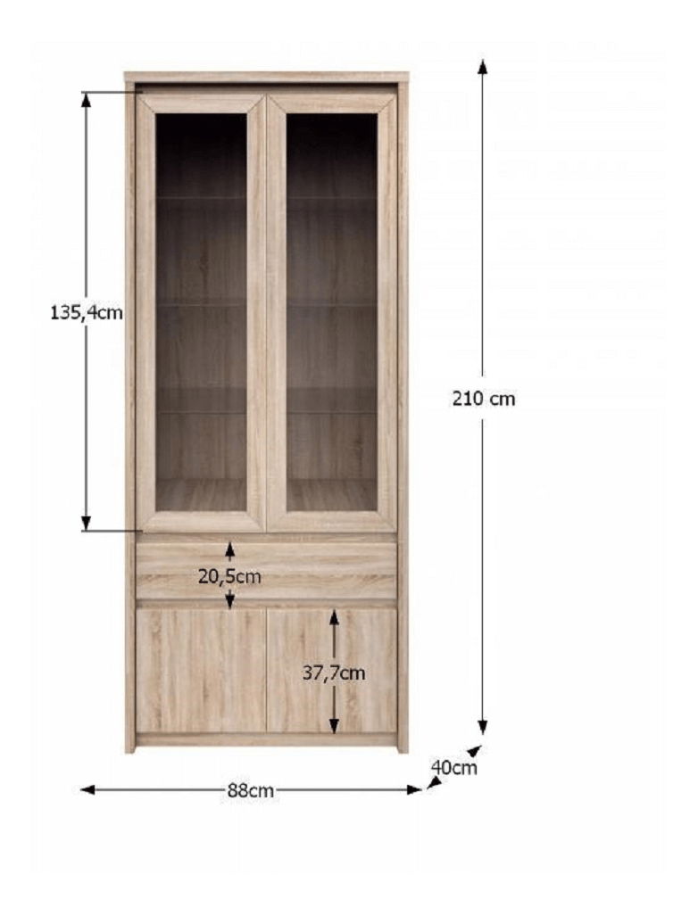 Vitrína Rihana Typ 3 s výškou 210 cm a hĺbkou 40 cm v dub sonoma prevedení je skvelým doplnkom pre váš domov alebo obchod. Materiál DTD laminovaná zaručuje odolnosť a dlhú životnosť vitríny. S hrúbkou materiálu 32 mm a s hrúbkou materiálu zvyšných častí 16 mm, je táto vitrína dostatočne pevná na uchovávanie vašich cenných predmetov. Vitrína je dodávaná v demonte, čo uľahčuje jej prenos a montáž. S rozmormi 88x40x210 cm poskytuje dostatok miesta na uskladnenie a vystavenie vašich predmetov. Vyzdvihnite krásu vášho interiéru s touto elegantnou vitrínou v prevedení dub sonoma.