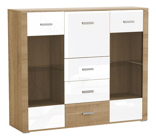 Vitrína Savona 2V3S1D (lesk biely + dub sonoma)