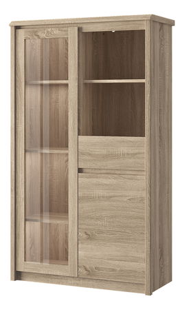 Vitrína Soledad (dub sonoma) s výškou 156,2 cm a hĺbkou 40 cm je ideálnym doplnkom pre váš interiér. Materiál frontu a korpusu je laminovaná doska, ktorá zabezpečuje dlhú životnosť a odolnosť vitríny. Sklo na dverách je transparentné a umožňuje vidieť vnútro vitríny. Vitína má 5 políc, ktoré majú nosnosť 5 kg. Úchytky nie sú súčasťou vitríny. Vitrína je balená do dvoch balíkov s rozmermi 196,5x47,5x14 cm/24,1 kg a 215,8x48,5x8 cm/29 kg. Vyznačuje sa moderným dizajnom a vynikajúcou kvalitou spracovania, ktorá robí z vitríny Soledad dokonalý nábytok pre každý domov.