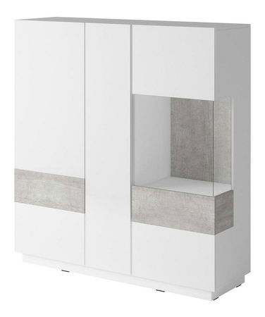 Vitrína Stacey Typ 46 (betón + biela) je nábytok, ktorý ponúka skvelé riešenie pre vystavenie a úschovu vašich predmetov. S výškou 139cm a hĺbkou 40cm táto vitrína je dostatočne veľká na uspokojenie vašich potrieb. Vitrína obsahuje sklenené dvierka, ktoré môžu byť podsvietené pomocou LED osvetlenia. Nábytok zo série Stacey ponúka veľa úložného priestoru v podobe políc, ktoré sú vyrobené z laminovaných dosiek a ABS líšt. Bezúchytový systém otvárania dvierok je elegantný a praktický zároveň. Vystavené predmety získajú istý štýl vďaka osvetleniu políc. Ak hľadáte nábytok, ktorý dokonale kombinuje funkčnosť a dizajn, potom je vitrína Stacey Typ 46 tou správnou voľbou pre vás.