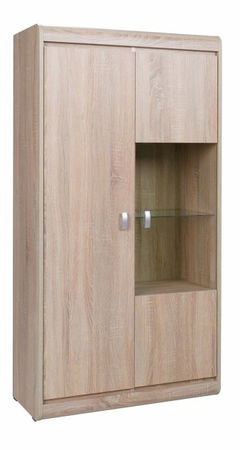 Menšia vitrína s dvomi dvierkami, pri čom pravá časť je uprostred presklená. Vitrína poslúži najmä v obývacej izbe, spálni, či pracovni. Štýlový dizajn je doplnený o zaoblené rohy v hornej časti vitríny. Úchyty dvierok vitríny sú plastové.