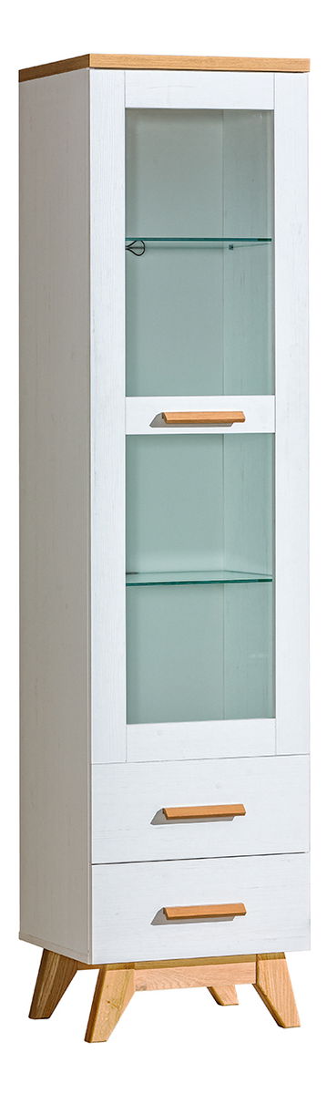 ZobraziťVitrína Sverdon SV4 je skvelým doplnkom pre vašu obývaciu izbu alebo kuchyňu. S výškou 185 cm a hĺbkou 40 cm poskytuje dostatok miesta na uskladnenie rôznych predmetov, ako sú knihy, porcelán alebo dekoračné predmety. Vitrína je vyrobená z kvalitného duba a borovice andersen, ktoré zabezpečujú pevnosť a odolnosť. Na predných dverách sú sklenené výplne, ktoré poskytujú prehľad o vnútornosti vitríny. Vnútorné police sú nastaviteľné, čo umožňuje prispôsobenie vitríny pre vaše potreby. Vďaka elegantnému dizajnu a kvalitnému spracovaniu vitrína Sverdon SV4 bude skvelým pridaním do vášho domova, kde zabezpečí funkčnosť aj estetický dojem.