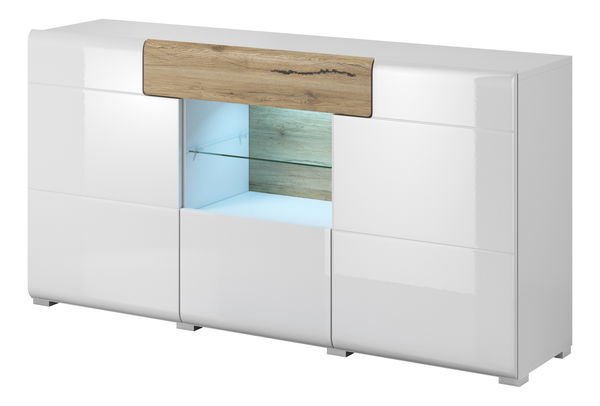 Komoda s vitrínou Terence je elegantná aj praktická. Okrem presklennej poličky máte dostatok úložného priestoru aj v zásuvke a za plnými dvierkami. Svetlá komoda s vitrínou je ako stvorená do kancelárie aj obývačky. Dosky sú potiahnuté vysokokvalitnou fóliou s dlhou trvanlivosťou.