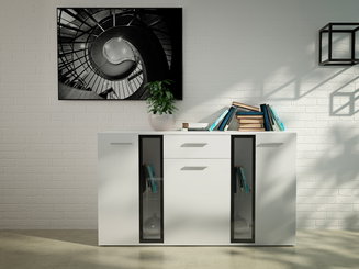 Vitrína BRW Azteca Trio KOM2W1D3S/10/15 (biela + lesk biely) (s osvetlením)