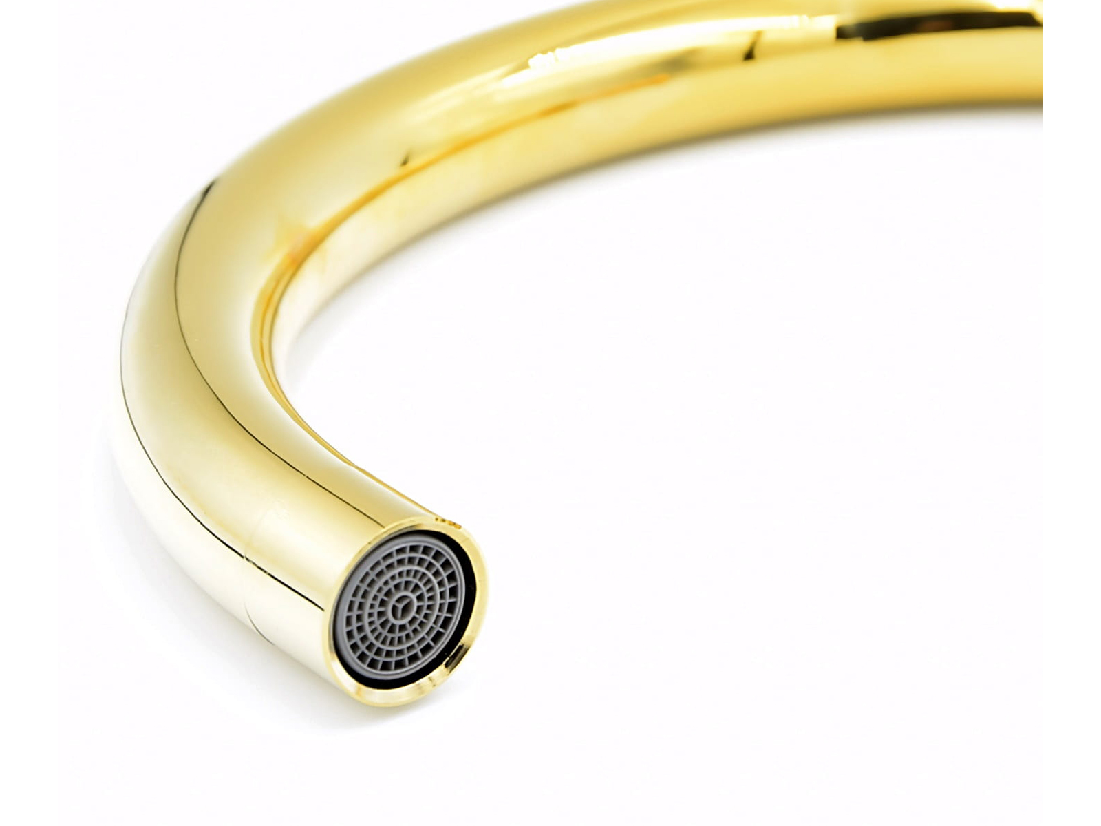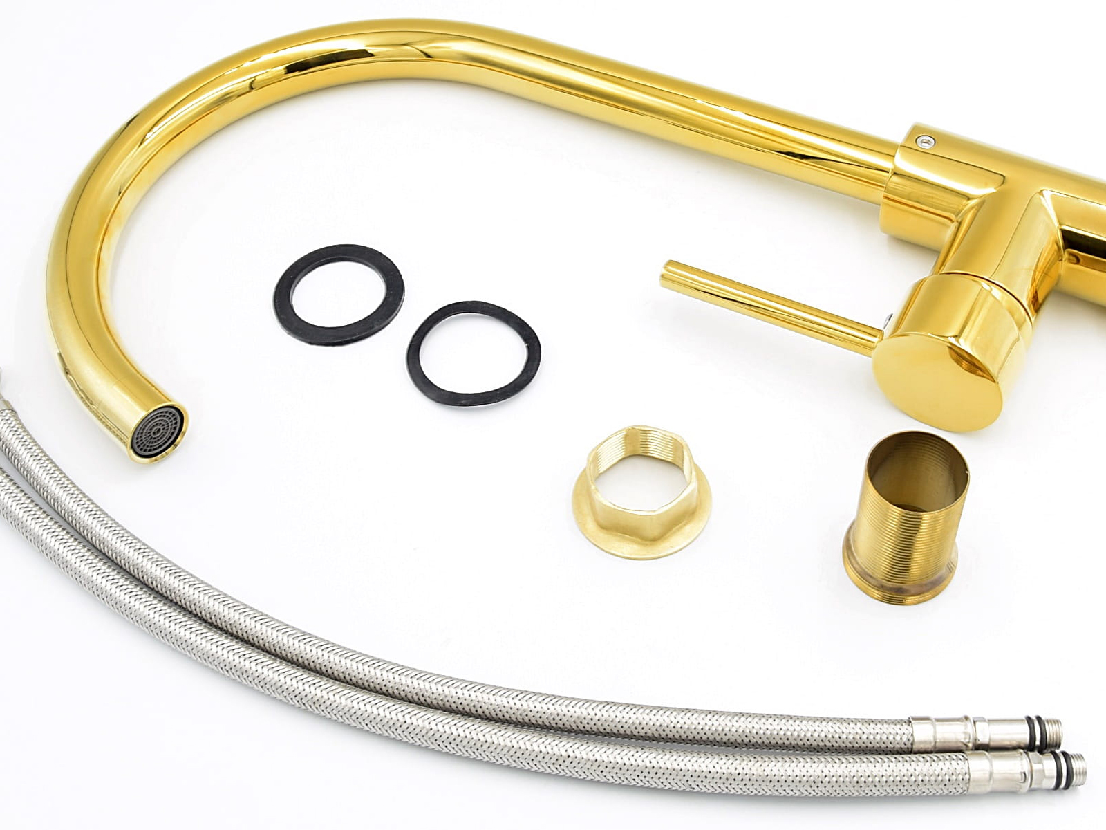 Vodovodná batéria Bintis (zlatá) je výrobok, ktorý kombinuje štýl a funkčnosť pre každú kuchyňu. S výškou 30 cm a zlatým povrchom je ideálnym doplnkom pre moderné interiéry. Batéria disponuje keramickou hlavicou a 360-stupňovou otočnou výlevkou, čo umožňuje jednoduché a pohodlné ovládanie. S vymeniteľným perlátorom m22 a štandardným 35 mm montážnym otvorom je jej inštalácia jednoduchá. Okrem toho má aj odolnú povrchovú úpravu, ktorá chráni pred škvrnami a teplom, čo zaručuje jej trvanlivosť a dlhú životnosť.