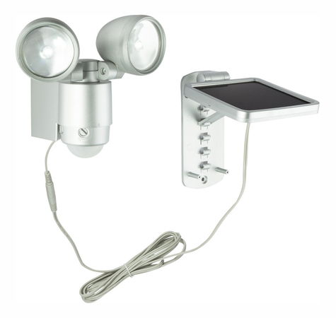 Vonkajšie svetlo solárne hliník, plast, strieborná IP44, vypínače, čidla: 130 °, rozsah: 4 - 8 metrov, 3x Ni MH AA 900mAh 1,2 V, LXH: 180x157, AL 155, vrátane 2xLED 1W 3.2V. , 95lm, 6500K