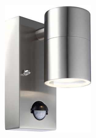 Vonkajšie svietidlo nerezová ocel priehľadné sklo vrátane LED 10705 IP44 senzor: 100° rozpätie 6m ŠxV: 70x150 AL: 110 vrátane 1ks žiarovky GU10 LED 5W 230V 420lm 3000K.