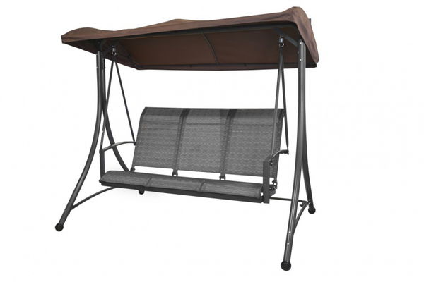 Robustná záhradná trojmiestna hojdacia lavica so strieškou, vyrobená z oceľových trubiek a komaxitovou povrchovou úpravou. Lavica je zavesená na vinutých pružinách. Nosnosť: 240 kg