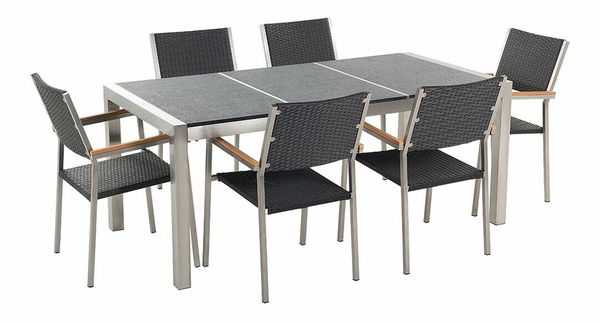 Záhradná jedálenská sada Grosso (prírodný kameň) (ratanové stoličky)