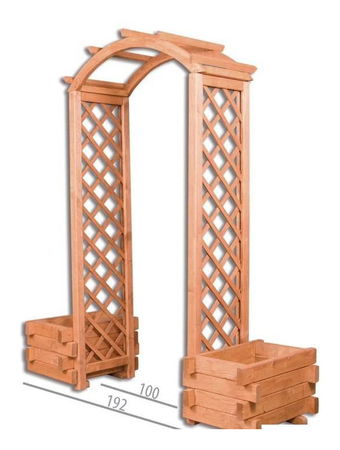 Táto záhradná konštrukcia MO190 s výškou 230 cm a hĺbkou 50 cm je skvelým doplnkom do Vašej záhrady. Konštrukcia má dva kvetináče, mriežku na uchytenie kvetín a klenbu, ktorá vytvára krásny vchod. Je vyrobená z masívu borovice, ktorý zaručuje vysokú stabilitu a životnosť. Materiál je prvotriedny a charakterizuje ho dôkladné spracovanie. Konštrukcia má veľmi výraznú kresbu dreva, ktorá sa mení od svetlého až po jemne načervenaný odtieň. Povrchová úprava je vykonaná ekologickým lakom. Je dôležité poznamenať, že drevo je prírodný materiál a farebné odchýlky od vyobrazenia nie sú dôvodom k reklamácii, nakoľko sa jedná o jeho prirodzenú vlastnosť. Tento nábytok od firmy Drewmax ocenia tí, ktorí majú radi tradičné a prírodné materiály.