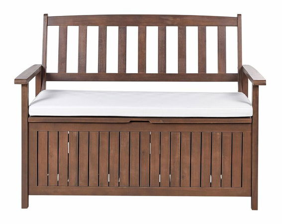 Táto drevená lavička vylepší vzhľad vášho vonkajšieho priestoru. Je vyrobená z vysokokvalitného akáciového dreva a zároveň je nenáročná na údržbu. Lavička je vybavená úložným priestorom, ktorý je ukrytý pod sedadlom. Úložný priestor možno využiť na odkladanie záhradného náradia alebo ochrannej plachty na záhradný nábytok. Táto lavička je vďaka rustikálnemu dizajnu dokonalým doplnkom do akejkoľvek záhrady alebo na terasu. Lavica je vybavená sedacím vankúšom, ktorý zvyšuje pohodlie pri sedení.