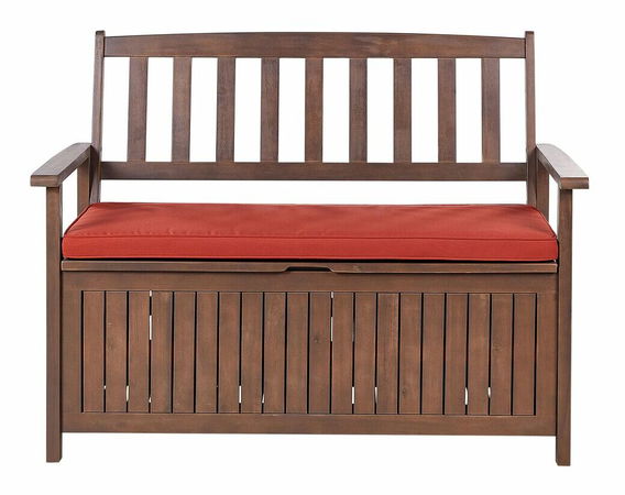 Záhradná lavička Sefu (tmavé drevo + červená) (s úl. priestorom))