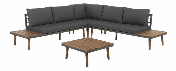 Táto päťmiestna záhradná pohovka je pohodlná, praktická a štýlová. Pohovka s dvoma veľkými dvojitými sedadlami a rohovým sedadlom je vhodná pre 5 osôb, takže je ideálna na rôzne záhradné párty a spoločenské akcie. Robustný rám je vyrobený z nehrdzavejúcej ocele so sofistikovaným povrchovým dizajnom z lešteného akáciového dreva. Vďaka dostatku priestoru na doplnky a dekorácie a elegantným vankúšom sa táto sedacia súprava môže stať stredobodom každej modernej terasy alebo záhrady.