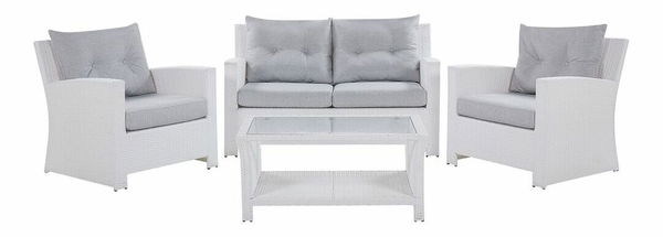 Vneste do svojej záhrady letnú atmosféru a luxusný dizajn vďaka tejto elegantnej sedacej súprave. Táto moderná sada je vyrobená z umelého ratanu, ktorý má dlhú životnosť a v akomkoľvek priestore poskytne dokonalé miesto na odpočinok. Bohato čalúnené vankúše sedadiel a operadiel v neutrálnom sivom odtieni poskytujú príjemné pohodlie počas sedenia. Súprava sa dodáva s bočným stolíkom, ktorý má priehľadnú sklenenú vrchnú dosku a poskytuje dostatok miesta na uloženie nápojov a občerstvenia.