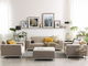 Táto záhradná sedacia súprava bude skvelým doplnkom každej záhrady či terasy, ale taktiež skvele poslúži aj vo vašom interiéri. Dvojmiestna pohovka má široké opierky rúk, vďaka čomu je sedenie ešte o niečo pohodlnejšie, zatiaľ čo každé z kresiel má mierne naklonené operadlo a hlboký tvar. Taburet poskytuje skvelú oporu pre vaše nohy, ale môže poslúžiť aj ako miesto na sedenie navyše alebo malý príručný stolík. Béžové čalúnenie je vyrobené z odolnej polyesterovej tkaniny, ktorá je vodoodolná a priedušná, takže je súprava ideálna na použitie v exteriéri.
