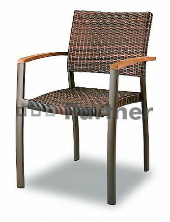 Elegantná záhradná stolička, ktorá spája hliník a umelý ratan. Je vyrobená z vysoko odolného hliníka. Hodí sa do exteriérov a aj interiérov.