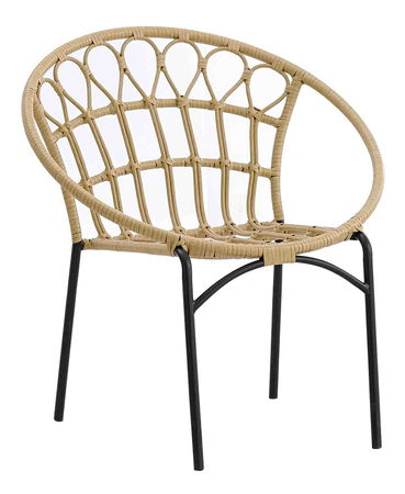 Záhradná stolička, ktorá je vhodná na terasu alebo pod pergolu? Predstavujeme vám modernú stoličku Elenda. Vyrobená je z umelého ratanu prírodnej farby. Stabilitu jej dávajú oceľové nohy v čiernom prevedení. Ponúka vysokú úroveň pohodlia a relaxácie. Zaujme vás svojim originálnym vyriešením chrbtovej opierky. Jednoducho ju skombinujete k akémukoľvek záhradnému stolu. Elenda sa stane hviezdou každého miesta, kde ju postavíte.