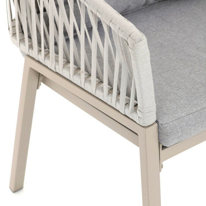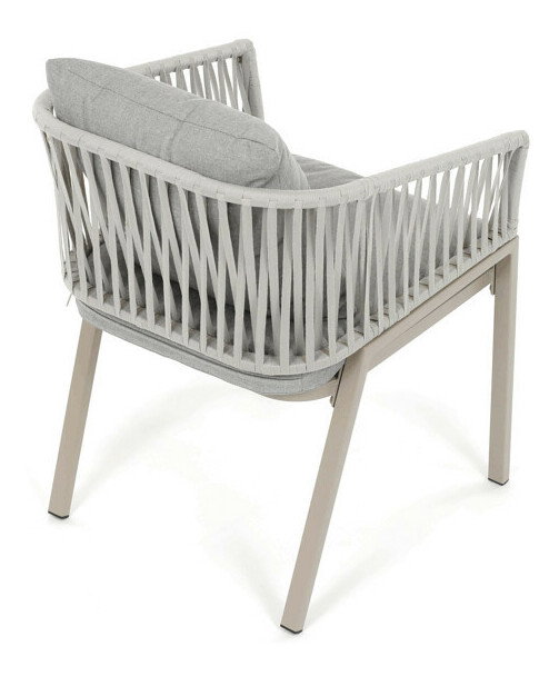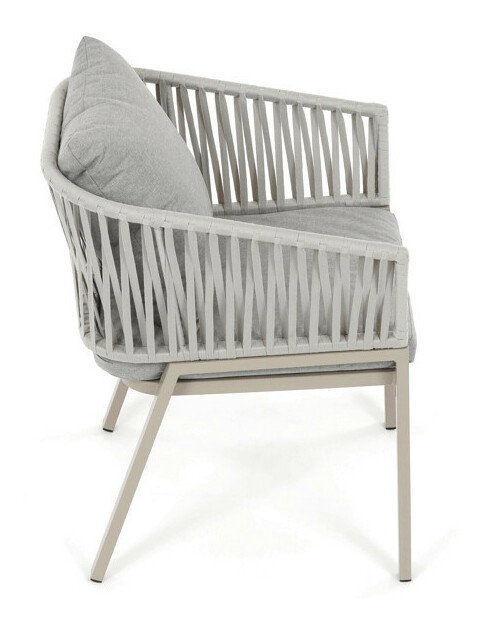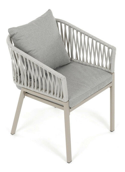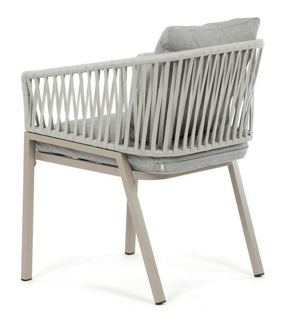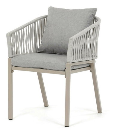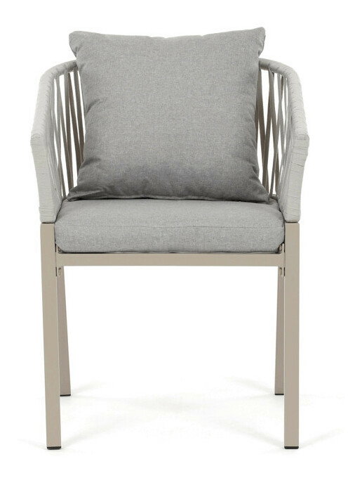 Záhradná stolička v béžovom prevedení spája stabilnú kovovú podnož s pohodlným sedákom a operadlom potiahnutým látkou v príjemnom odtieni. Nadčasový dizajn s jemnými líniami a otvorenou konštrukciou operadla vytvára vzdušný vzhľad vhodný pre rôzne vonkajšie priestory. Stolička je navrhnutá tak, aby poskytovala komfort pri posedení na terase, záhrade či balkóne, pričom pevná kovová podnož zabezpečuje dlhodobú stabilitu a odolnosť voči poveternostným vplyvom. Látkový poťah je príjemný na dotyk a ľahko sa udržiava, čo prispieva k praktickému využitiu v exteriéri. Celková konštrukcia podporuje pohodlnú ergonómiu a umožňuje relaxáciu v prírodnom prostredí.