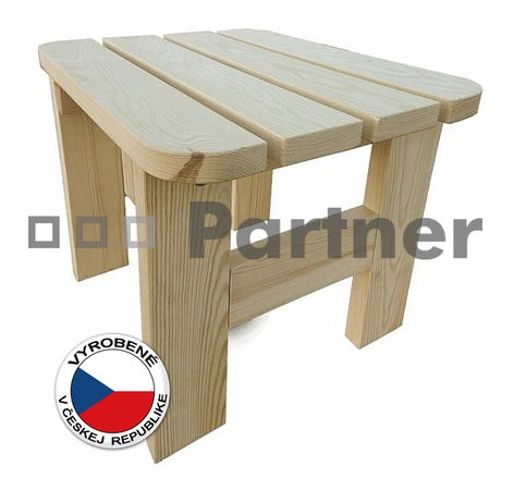 Záhradná taburetka je vhodný doplnok k záhradnému nábytku. Môže sa použiť na sedenie, poprípade ako odkladací stolček. Je to kvalitný český výrobok vyrobený z masívnej borovice. Drevo je pasterizované sušením na 80 °C a jeho hrúbka je 32 mm.