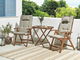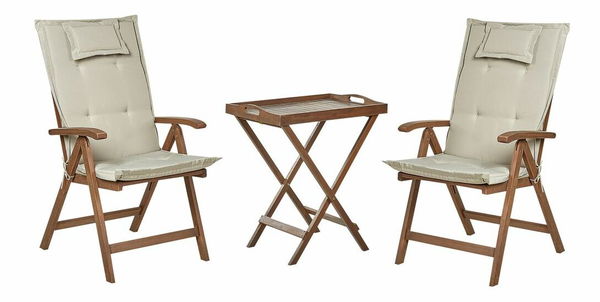 Táto rustikálna balkónová súprava premení váš vonkajší priestor na útulné miesto na stretnutia s priateľmi. Stoličky aj konferenčný stolík sú vyrobené z odolného akáciového dreva a vyžadujú si len minimálnu údržbu, aby zostali v dobrom stave aj po rokoch. Všetky kusy sú skladacie, takže ich možno jednoducho uskladniť alebo premiestniť podľa potreby. Stoličky sú navyše vybavené nastaviteľnými operadlami a sú ideálne na relaxáciu a oddych po náročnom dni. Táto súprava s čistými líniami a krásnym tmavým odtieňom dreva doplní širokú škálu štýlov vonkajšieho zariadenia.