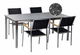 Urobte zo svojej záhrady či terasy štýlové miesto na stolovanie s najbližšími. Stôl je vyrobený z nehrdzavejúcej ocele, ktorú dopĺňa stolová doska z tvrdeného skla v nadčasovej čiernej farbe. Vďaka prirodzenej odolnosti voči UV žiareniu, vode a hrdzi je ideálnou voľbou do moderných vonkajších priestorov. Veľká stolová doska poskytuje dostatok miesta pre 6 osôb, takže usporadúvanie väčších osláv bude jednoduché. Súčasťou jedálenskej zostavy sú 4 stoličky s textilnými operadlami a sedadlami, ktoré zvýrazňujú moderný vzhľad nábytku a poskytujú pohodlné miesto na sedenie.