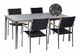 Urobte zo svojej záhrady či terasy štýlové miesto na stolovanie s najbližšími. Stôl je vyrobený z nehrdzavejúcej ocele, ktorú dopĺňa stolová doska z tvrdeného skla v nadčasovej čiernej farbe. Vďaka prirodzenej odolnosti voči UV žiareniu, vode a hrdzi je ideálnou voľbou do moderných vonkajších priestorov. Veľká stolová doska poskytuje dostatok miesta pre 6 osôb, takže usporadúvanie väčších osláv bude jednoduché. Súčasťou jedálenskej zostavy sú 4 stoličky z umelého ratanu, ktoré zvýrazňujú moderný vzhľad nábytku a poskytujú pohodlné miesto na sedenie.