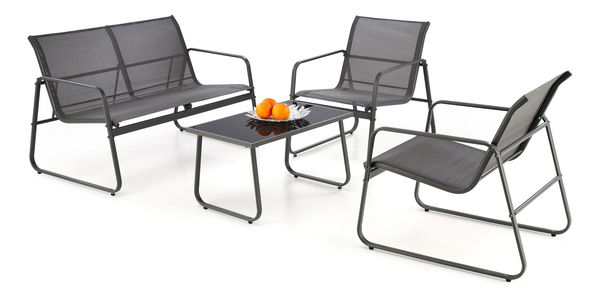 ZobraziťTáto moderná záhradná zostava je štýlovým a praktickým riešením pre vonkajšie posedenie. Pozostáva zo štyroch elementov: sedačky s rozmermi 114 x 74 x 76 x 38 cm, 2x kreslo s rozmermi 60 x 74 x 76 x 38 cm a konferenčného stolíka s rozmermi 75 x 45 x 41 cm. Je vyrobená z odolnej práškovo lakovanej ocele, ktorá zaručuje dlhú životnosť a odolnosť voči poveternostným vplyvom. Sedačka a kreslo sú pokryté sieťovinou, ktorá poskytuje pohodlné sedenie, zatiaľ čo konferenčný stolík je doplnený sklenenou doskou, ktorá dodáva zostave elegantný vzhľad. Táto zostava je ideálna pre relaxáciu alebo spoločenské stretnutia v záhrade či na terase.