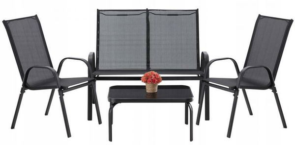 Záhradná zostava Kiri (čierna) s výškou 96 cm a hĺbkou 62 cm, je ideálna pre tých, ktorí hľadajú spojenie klasiky a elegancie. Sada záhradného nábytku má jednoduchý tvar a štýlový dizajn, ktorý poteší každého. Táto zostava sa hodí do každého priestoru - na balkón, terasu alebo do záhrady. Stolík má tvrdené sklo s textúrou priehľadnej mozaiky, ktoré určite umožní dlhé roky používania. Opláštenie je vyrobené z hustého opletu natiahnutého cez oceľový rám s práškovaným nástrekom. Sada obsahuje stôl, pohovku a dve stoličky. Materiál poťahu je textil a stoličky sú stohovateľné, čo je mimoriadne praktické riešenie, ktoré uľahčuje skladovanie. Táto záhradná zostava je dokonalým doplnkom pre pohodlie domácej záhrady alebo komerčné priestory.