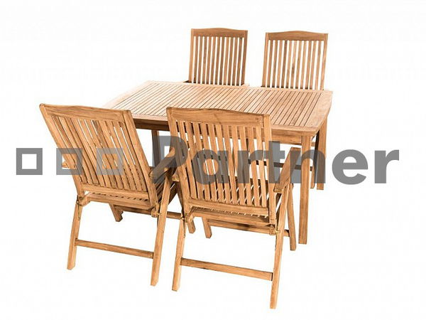 Záhradná zostava z veľmi odolnej dreviny teak. Táto drevina sa vyznačuje unikátnymi vlastnosťami, ako je tvrdosť a odolnosť dreva. Aj napriek tomu, sa jedná o odolný prírodný materiál, doporučujeme nábytok raz ročne impregnovať teakovým olejom.