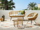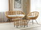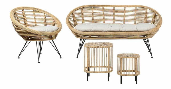 Táto ratanová sedacia súprava v boho štýle je dokonalou kombináciou nadčasovej elegancie a funkčnosti. Pozostáva z 2-miestnej pohovky, kresla a sady dvoch konferenčných stolíkov z kvalitného ratanu doplneného pevnými železnými nohami, ktoré sú zárukou odolnosti a štýlu. Táto súprava vynikne v akomkoľvek priestore a môžete ju využiť v obývacej izbe i na terase. Súprava nábytku inšpirovaná boho štýlom dodá jedinečný charakter akémukoľvek priestoru.