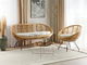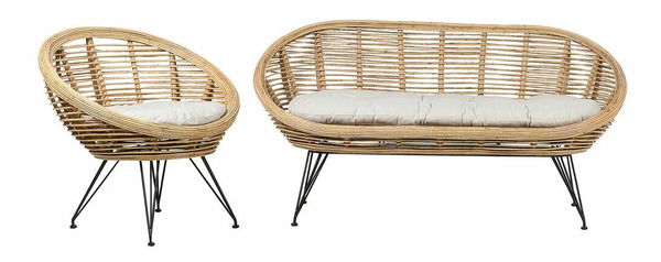 Táto ratanová sedacia súprava v boho štýle je dokonalou kombináciou nadčasovej elegancie a funkčnosti. Pozostáva z 2-miestnej pohovky a kresla z kvalitného ratanu doplneného pevnými železnými nohami, ktoré sú zárukou odolnosti a štýlu. Táto súprava vynikne v akomkoľvek priestore a môžete ju využiť v obývacej izbe i na terase. Súprava nábytku inšpirovaná boho štýlom dodá jedinečný charakter akémukoľvek priestoru.