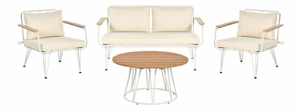 Zažite skutočný relax a štýlové pohodlie na čerstvom vzduchu s touto výnimočnou záhradnou sedacou súpravou. Pozostáva z očarujúcej dvojmiestnej pohovky, dvoch príjemných kresiel a elegantného konferenčného stolíka. Má pevnú oceľovú konštrukciu, ktorá zaručuje dokonalú stabilitu a odolnosť voči nepriaznivým poveternostným podmienkam. Doska stola a opierky rúk majú povrchovú úpravu pripomínajúcu drevo, ktorá pôsobí prírodným dojmom a súprave dodáva rustikálny nádych. Sedacie vankúše zaručujú nielen vysoký komfort počas sedenia, ale vďaka zabudovaným zipsom sú nenáročné na údržbu.