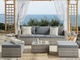Táto funkčná sedacia súprava dokonale doplní akýkoľvek vonkajší priestor. Pozostáva zo štyroch kusov, ktoré je možné kombinovať alebo rozložiť. 3-miestna pohovka má zdvíhacie sedadlo na oboch stranách, takže ju možno použiť ako posteľ a s dvomi priloženými taburetkami môžete jednoducho vytvoriť rohovú pohovku. Súprava je vyrobená z odolného umelého ratanu a jej súčasťou sú hrubé vankúše a konferenčný stolík.