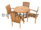 Praktická zostava z exotickej dreviny teak. Táto drevina sa vyznačuje unikátnymi vlastnosťami, ako je tvrdosť a odolnosť dreva. Aj napriek tomu, sa jedná o odolný prírodný materiál, doporučujeme nábytok raz ročne impregnovať teakovým olejom. V strede stola sa nachádza otvor na slnečník s priemerom 5 cm.