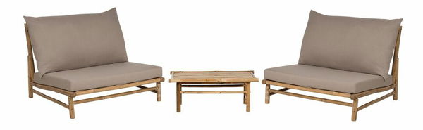 Vytvorte si doma alebo na záhrade dokonalé miesto na relaxáciu s touto súpravou konferenčného stolíka a stoličiek. Všetky prvky sú vyrobené z prírodného bambusu a pýšia sa podmanivou štruktúrou dreva, ktorá vyžaruje hrejivosť prírody. Sedadlá sú vybavené bohato čalúnenými vankúšmi, vďaka ktorým tento kus zaručuje dokonalé pohodlie. Vďaka prírodnému svetlému odtieňu dreva a sivej látke vankúšov súprava bez problémov zapadne do akéhokoľvek moderného dizajnu napríklad v škandinávskom alebo Japandi štýle.