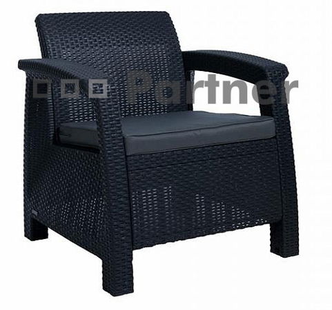 Moderné záhradné kreslo Corfu je vyrobené z umelého ratanu antracitovej farby, vďaka ktorej dokonale zapadne medzi ostatné doplnky vo Vašej záhrade či na terase. Výhodou celoplastovej konštrukcie je, že je veľmi trvácna a nikdy nezhrdzavie alebo nespráchnivie. Kvalitný výplet je natoľko dokonalý, že pri bežnom používaní sa nikdy nerozpletie. Pre zväčšenie pohodlia pri sedení Vám dáme sedák zdarma. Konštrukcia, výplet aj sedák odolávajú vplyvom počasia, poveternostným podmienkam, vode aj UV žiareniu. Kreslo je dodávané v demonte, no montáž je veľmi jednoduchá a nezaberie Vám veľa času.