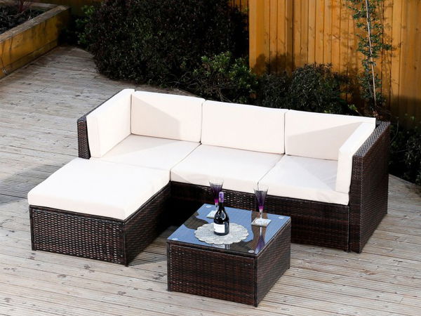 Záhradný nábytok modelového radu Alera je dvoj-dielna súprava, ktorá obsahuje sedaciu súpravu spolu s rohom a vankúšmi a konferenčný stolík s tvrdeným sklom (5mm). Poťahy na vankúšoch sú snímateľné a vode odolné.